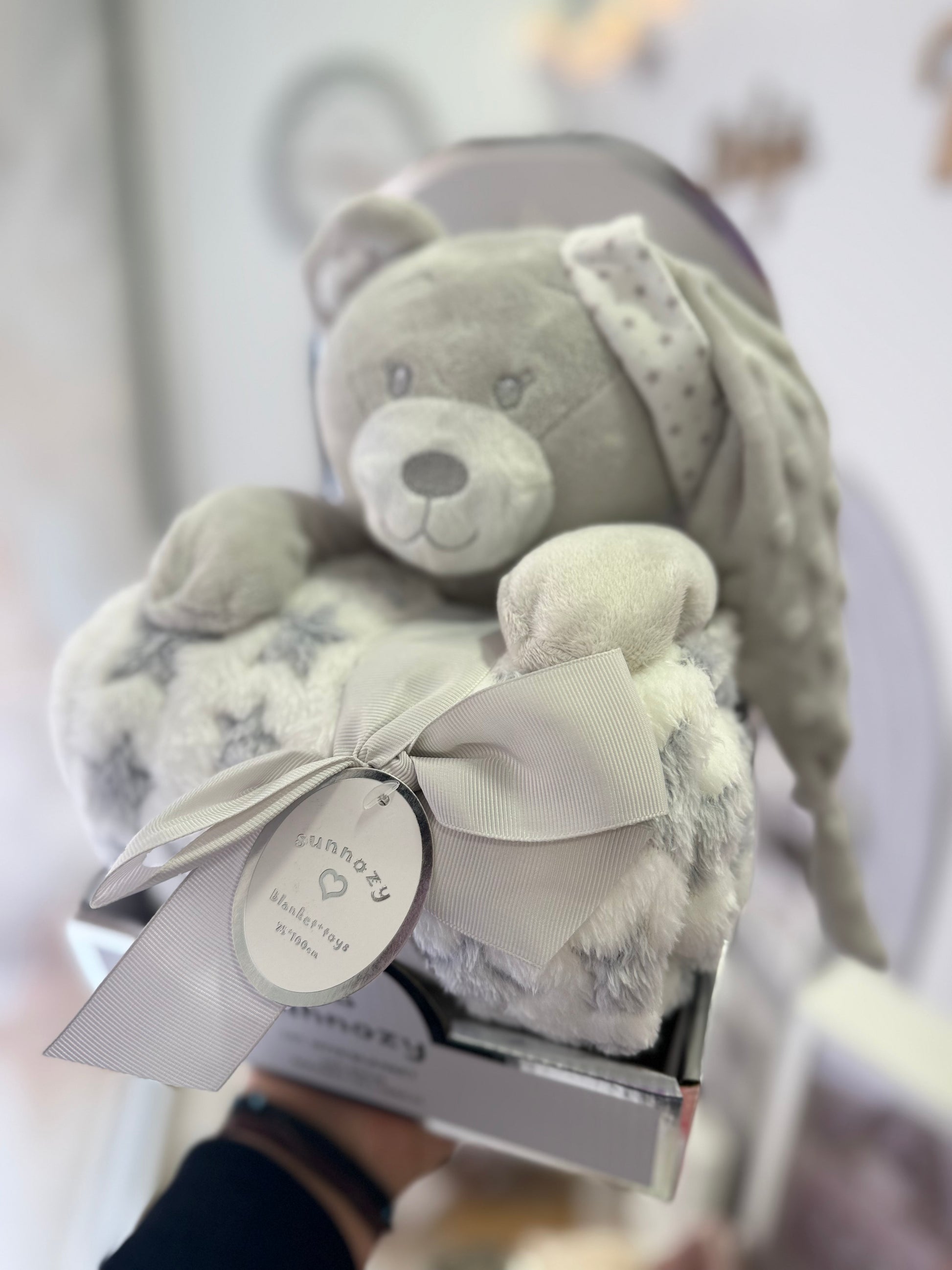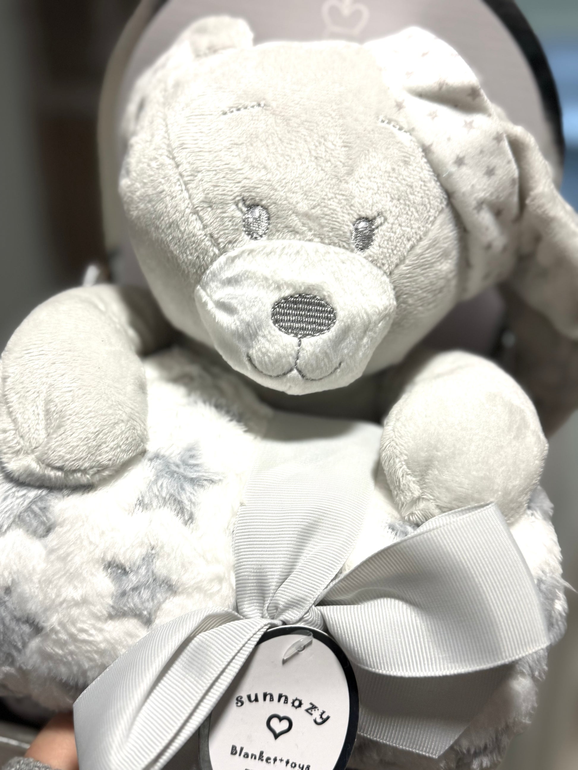 Ένα τρυφερό και διαχρονικό αρκουδάκι νάνι, σε απαλούς γκρι και λευκούς τόνους, σχεδιασμένο για να προσφέρει ηρεμία, ζεστασιά και γλυκά όνειρα. 🤍