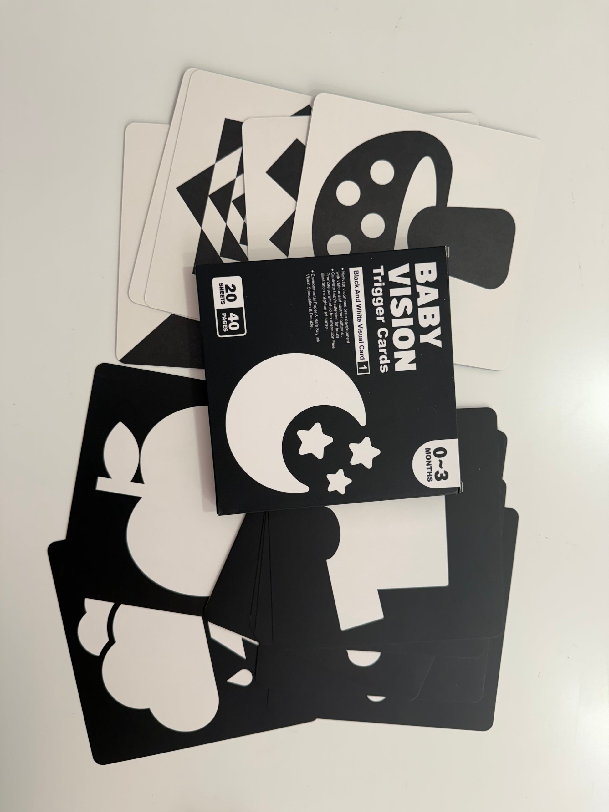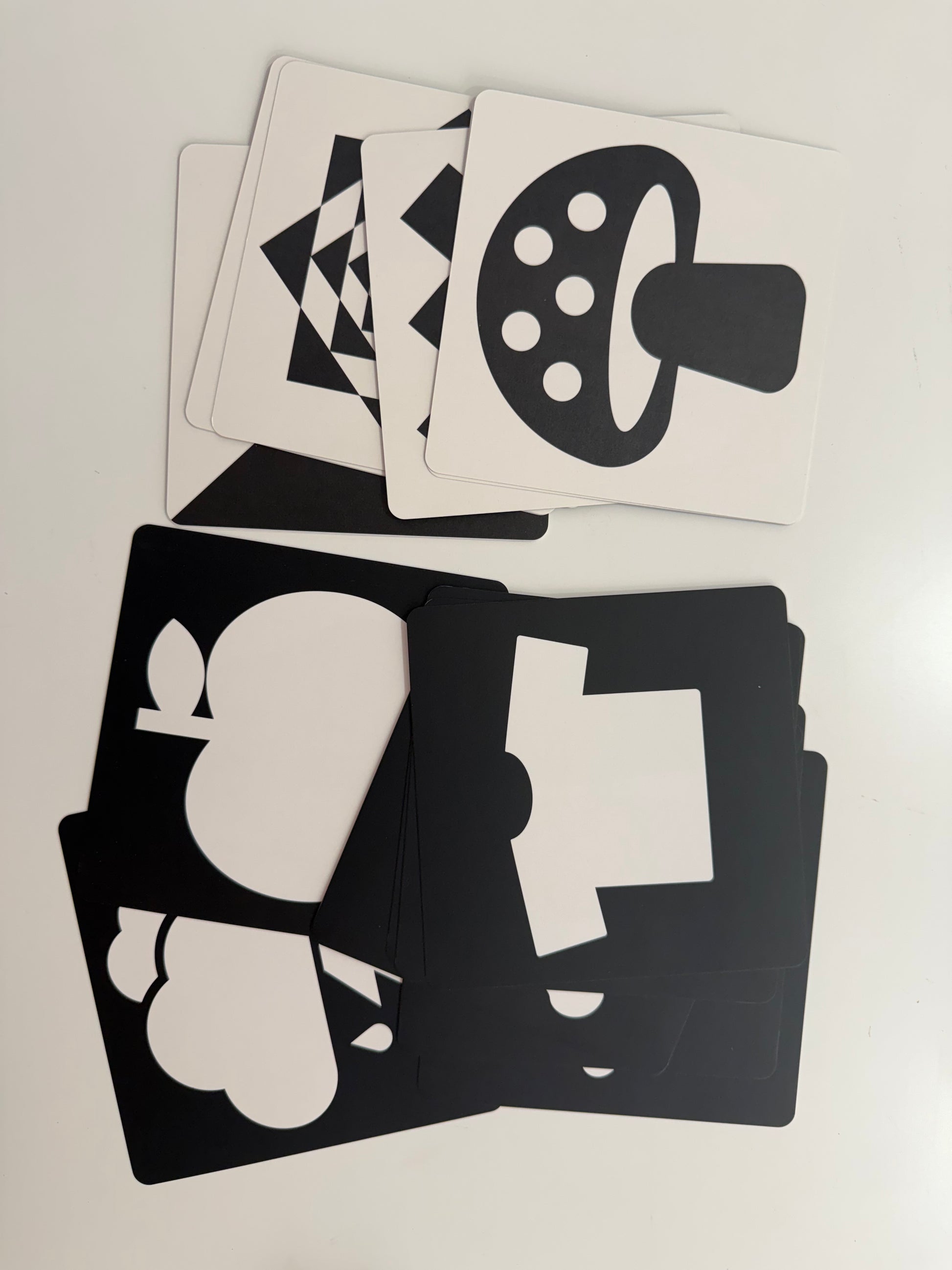 Γι'αυτο τον λόγο οι ασπρόμαυρες κάρτες με την έντονη αντίθεση εκπαιδεύουν την όραση του παιδιού δίνοντας του την ευκαιρία για παρατήρηση και συγκέντρωση!