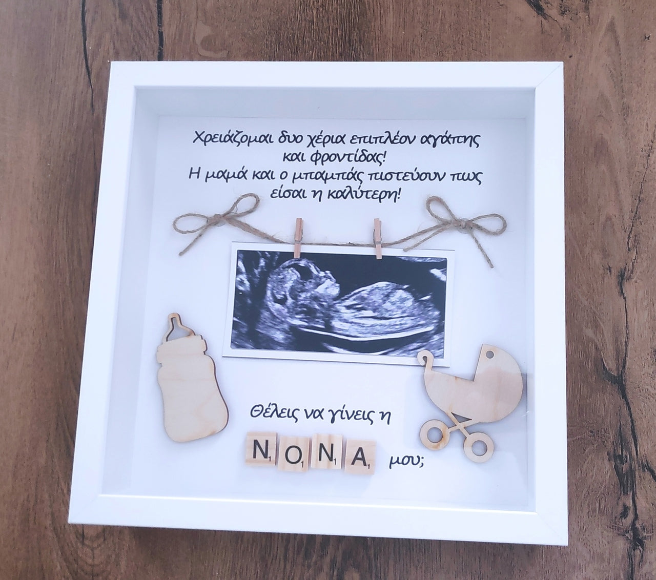 Καδράκι για NONA με ξυλινα διακοσμητικα και γραμματα τυπου Scrabble