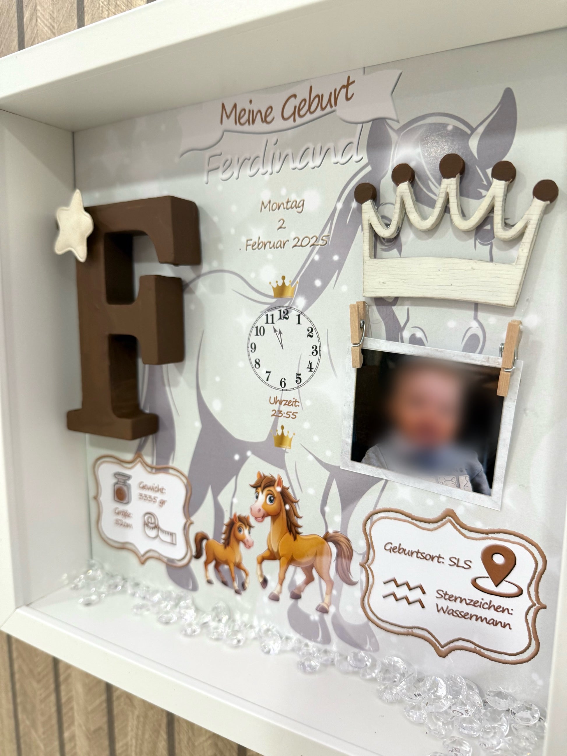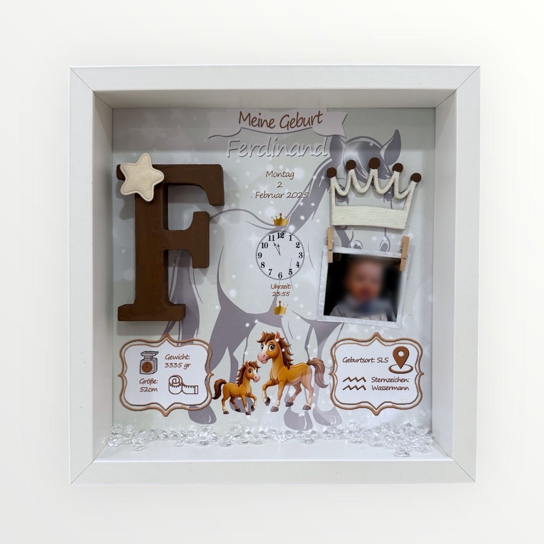 Ένα ξεχωριστό αναμνηστικό καδράκι με θέμα το άλογο αφιερωμένο στην πιο όμορφη αρχή: τη γέννηση του μωρού σας.