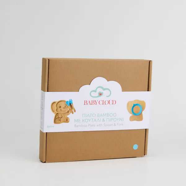 Πιάτο από 100% μπαμπού με βεντούζα σιλικόνης και πιρούνι-κουτάλι.