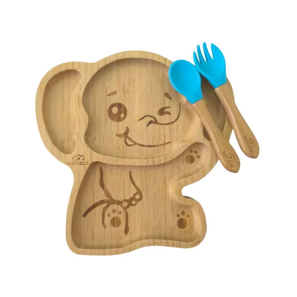 Πιάτο Φαγητού από Bamboo με Κουτάλι/Πιρούνι - Ελεφαντάκι Μπλε