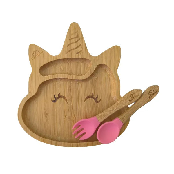 Πιάτο Φαγητού από Bamboo με Κουτάλι/Πιρούνι - Μονόκερος Ροζ