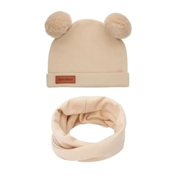 Σετ παιδικό σκουφάκι με πομ-πομ & κασκόλ - Μπεζ