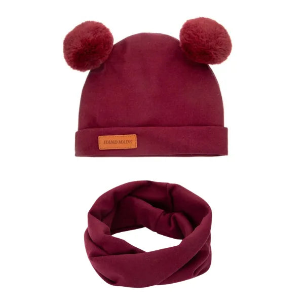 Σετ παιδικό σκουφάκι με πομ-πομ & κασκόλ - Μπορντό
