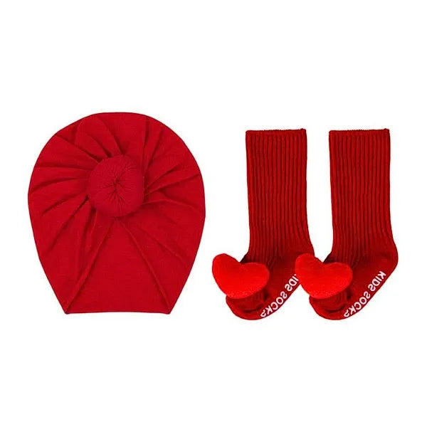 Σετ παιδικό τουρμπάνι και καλτσάκια με τρισδιάστατες καρδούλες!