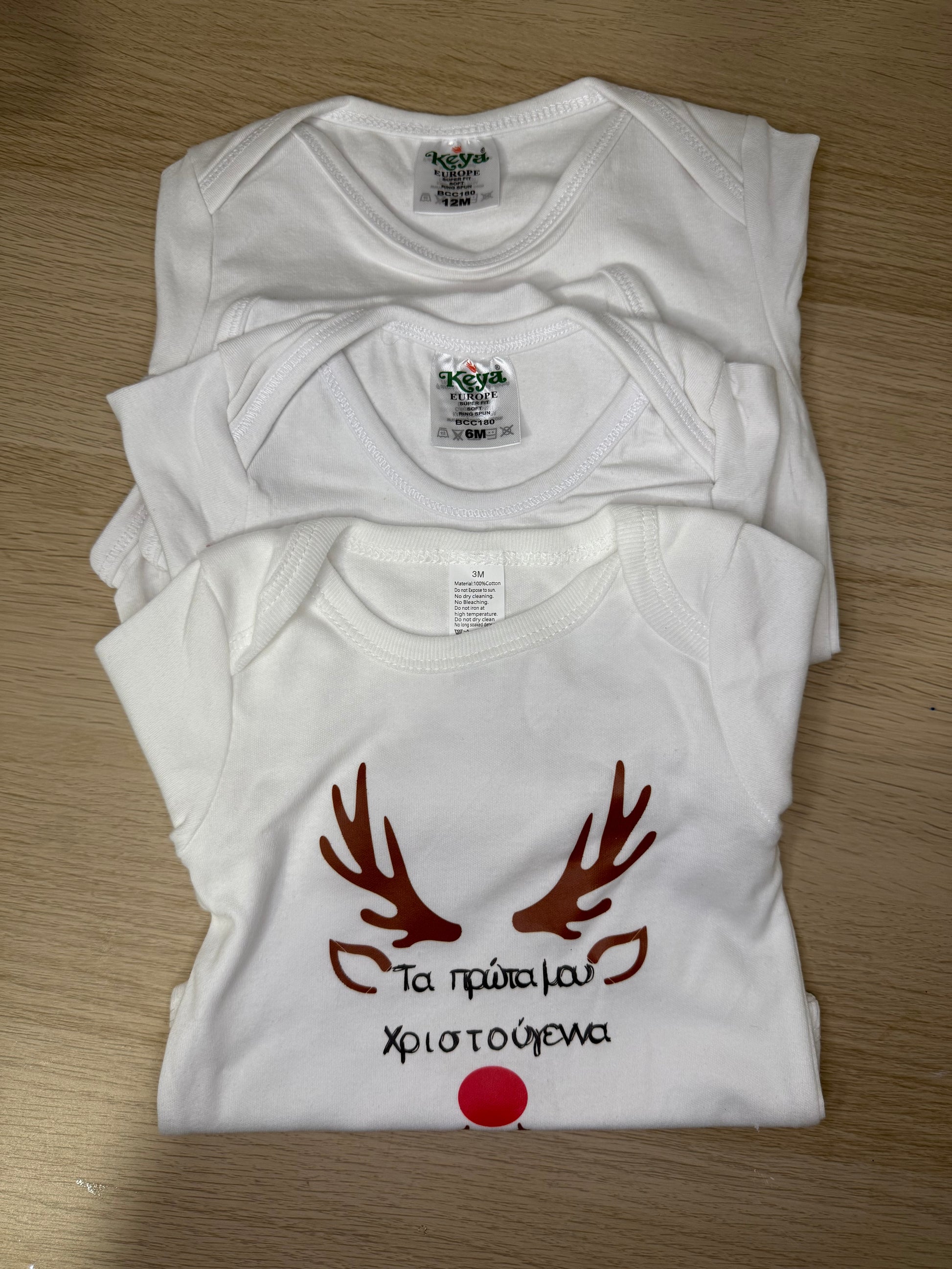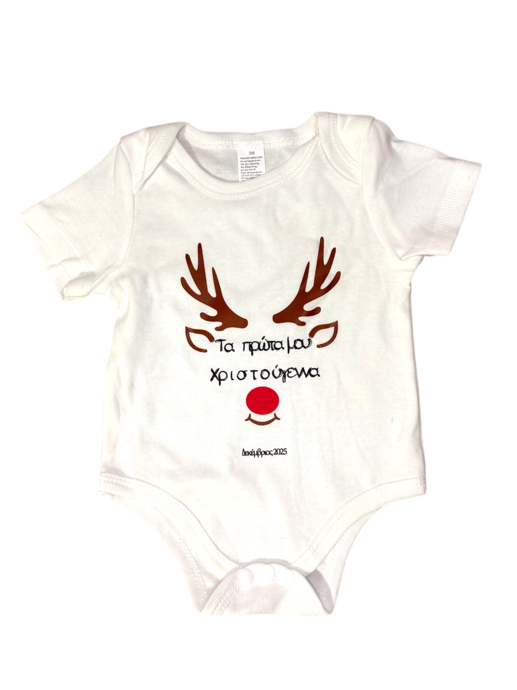 Φορμάκι Βαμβακερό με τον Ρούντολφ και γραμμένο Τα πρώτα μου Χριστούγεννα!