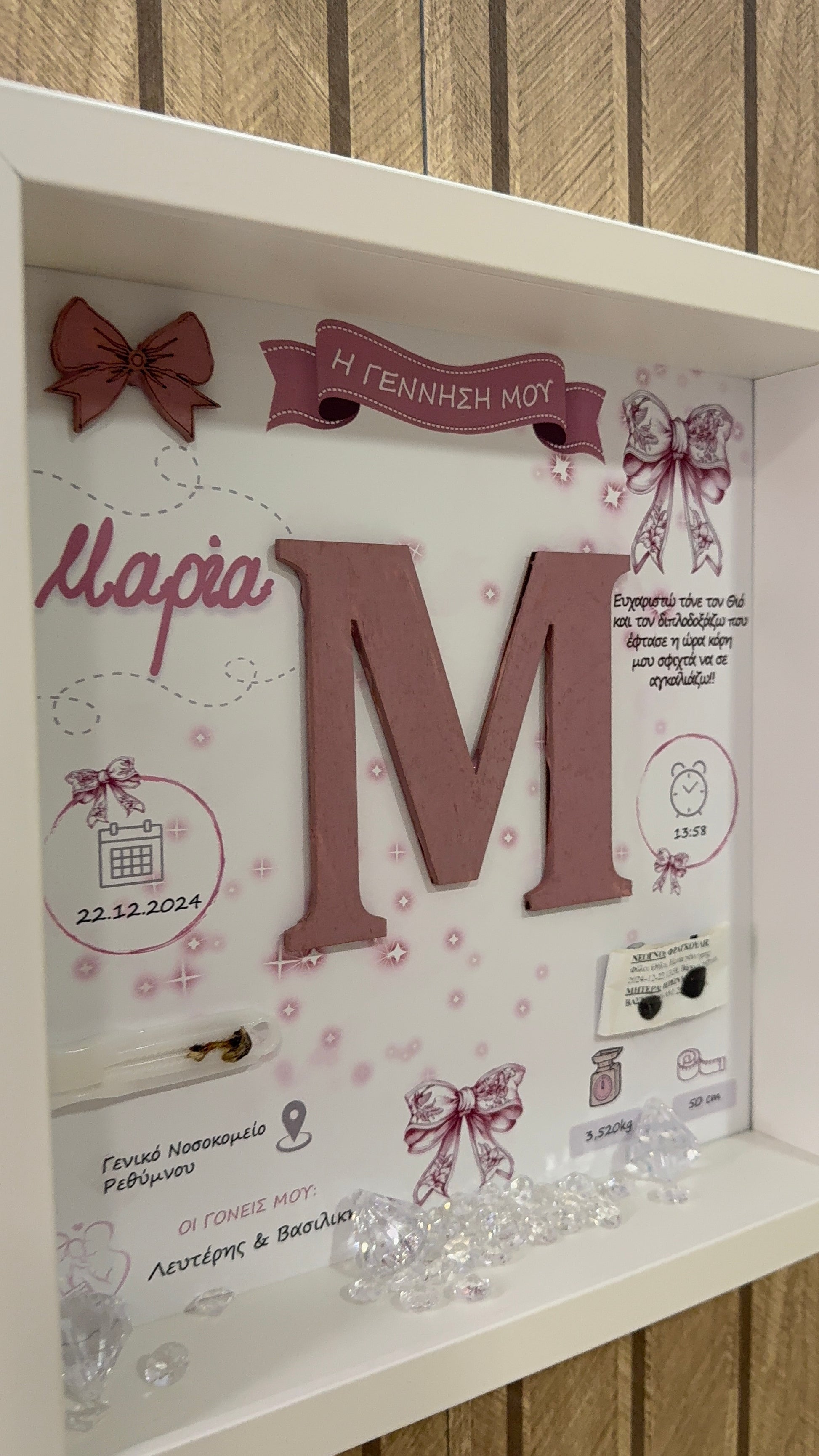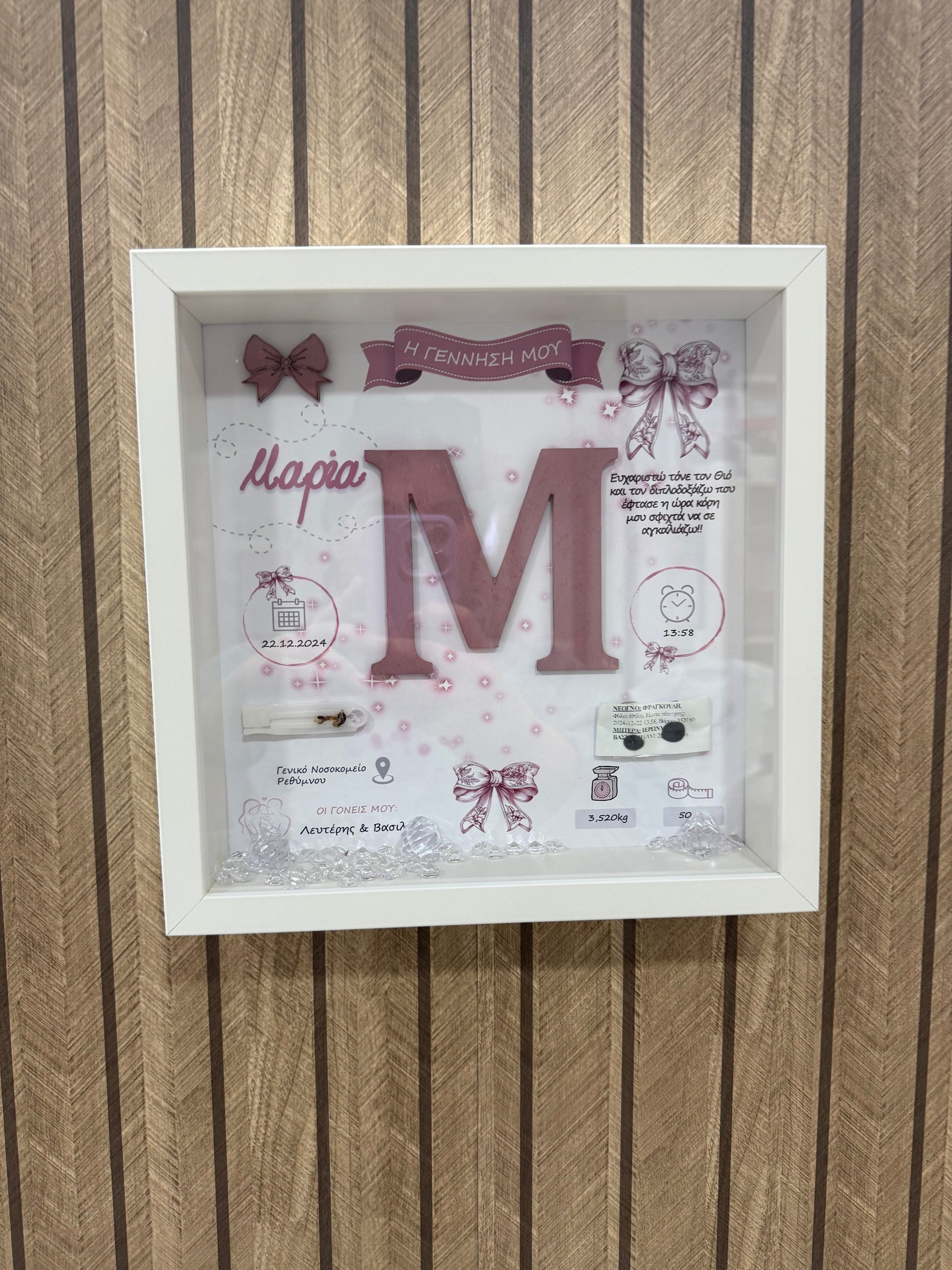 Ένα ξεχωριστό κομμάτι, φτιαγμένο για να στολίζει το παιδικό δωμάτιο και να κρατά ζωντανή την αρχή της ιστορίας σας.