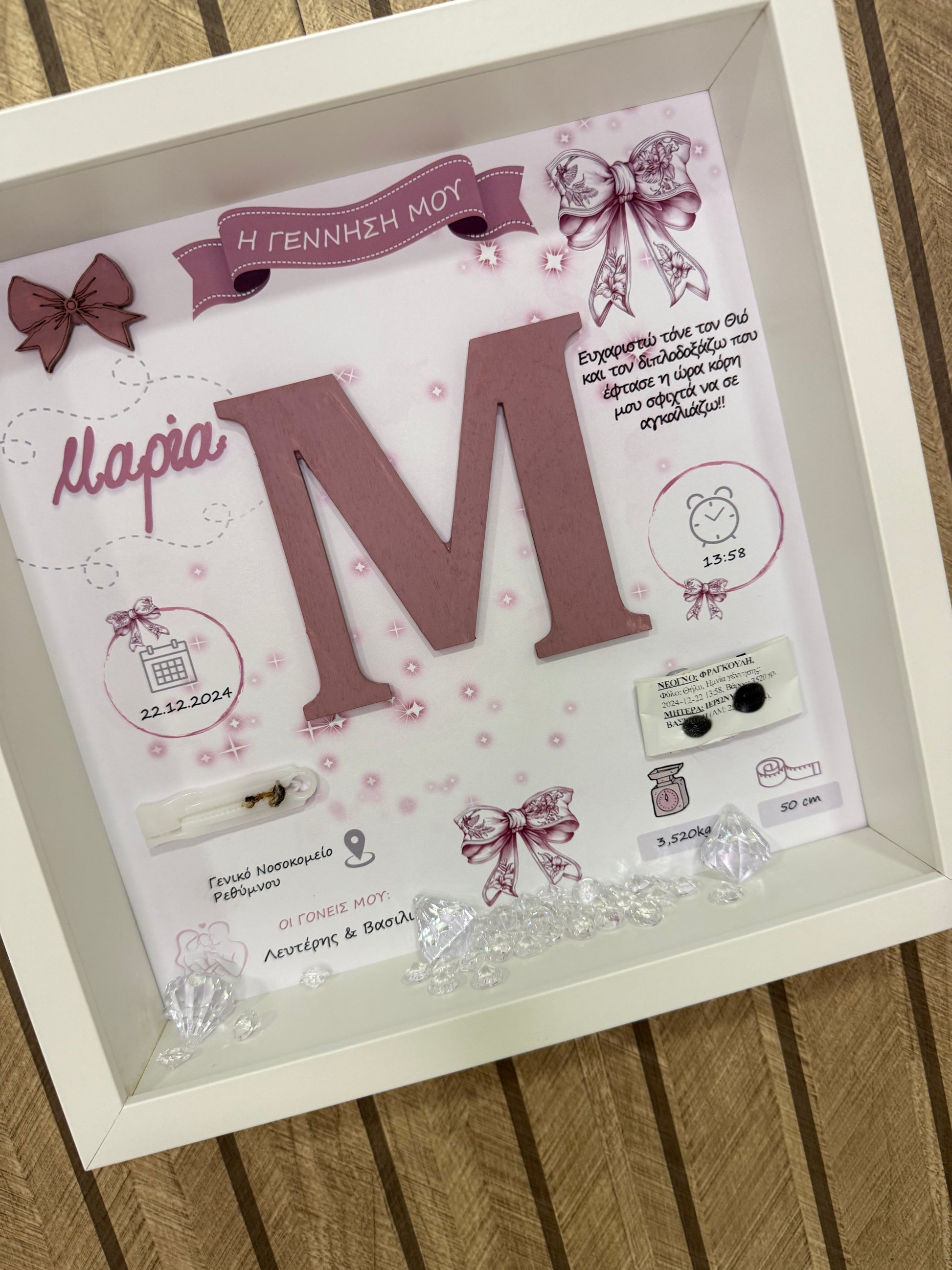 Καδράκι "Φιογκακι" και αναμνηστικά γέννησης